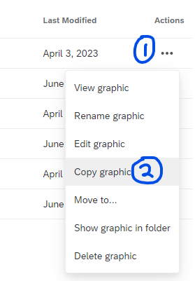 You can also move content into a Group library by clicking the “…” menu to the right of the item and choosing Copy (shown below for a graphic, which says “Copy graphic”). For more information about Group libraries, see Section 14.4.2.