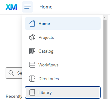 From the main Qualtrics interface, you can access your libraries by clicking the menu icon in the top left corner, then clicking Library.