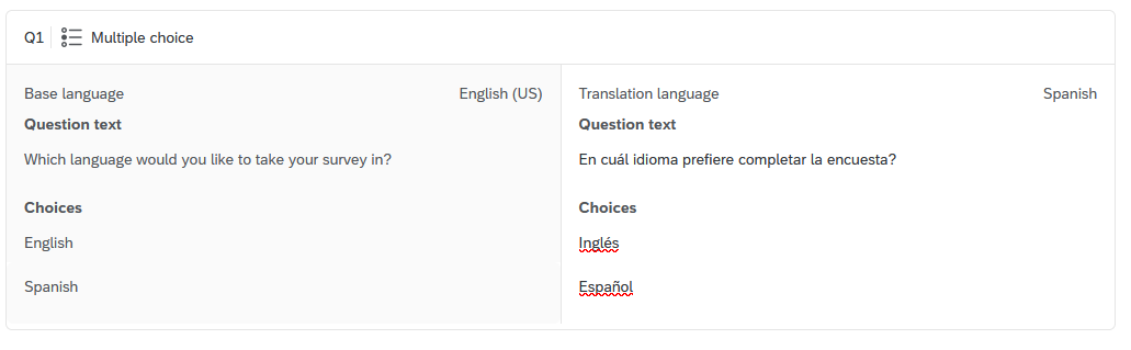 For example, if you write your survey questions in Spanish, but leave the survey language set to English, browsers may offer to auto-translate it.